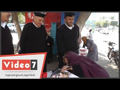سيدة مسنة تنحنى للشرطة أمام سفارة قطر نعم للسيسى