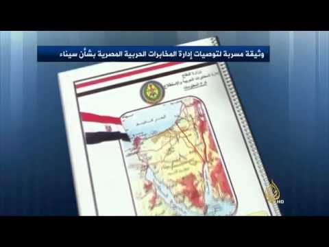 http://www.youtube.com/watch?v=EXSiA3jcXCIendofvid [starttext]حصلت الجزيرة على وثيقة مسربة من إدارة المخابرات الحربية والاستطلاع موقّعة باسم اللواء محمود حجازي -الذي كان مديرا لها حتى اليوم- تعود إلى أواخر مايو/أيار من العام الماضي قبل انقلاب الثالث من يوليو/تموز 2013.والوثيقة الموقعة بخط يد اللواء حجازي لا تتضمن أي اتهام لجماعة الإخوان المسلمين أو حركة المقاومة الإسلامية (حماس) بالإضرار بأمن سيناء.