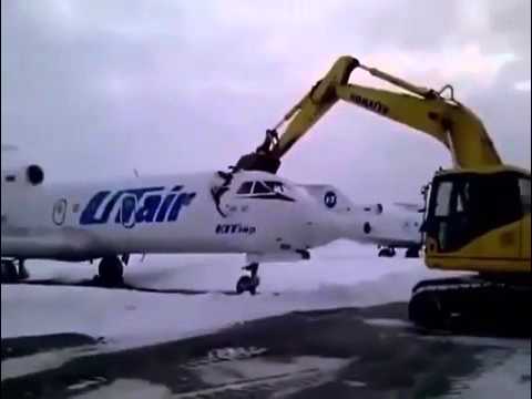 عامل روسي يتلف طائرة خاصة باستخدام آلة حفر