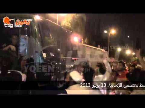 ردة فعل المعتصمين بعد دخول سيارتين شرطة