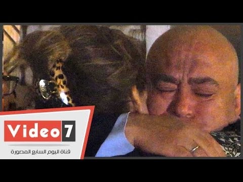 عماد الدين أديب يبكى فى عزاء والدته وزوجته تواسيه