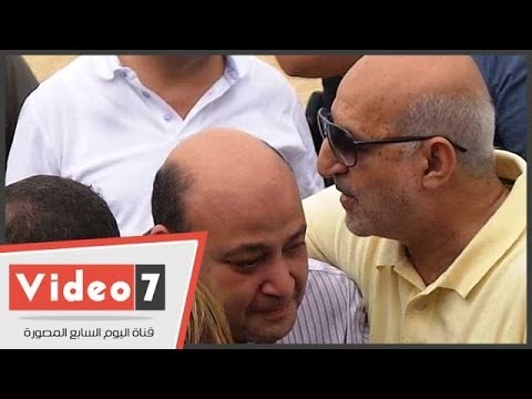 عمرو أديب يكتم البكاء أثناء تشييع جنازة والدته بمسجد الشرطة