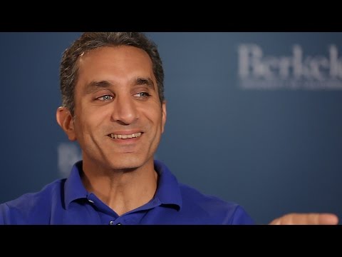 وخلال هذا اللقاء، تحدث يوسف مع مستشار جامعة كاليفورنيا في بيركلي، نيكولاس ديركس، عن حرية التعبير وأسباب وقف برنامجه الساخر في مصر.